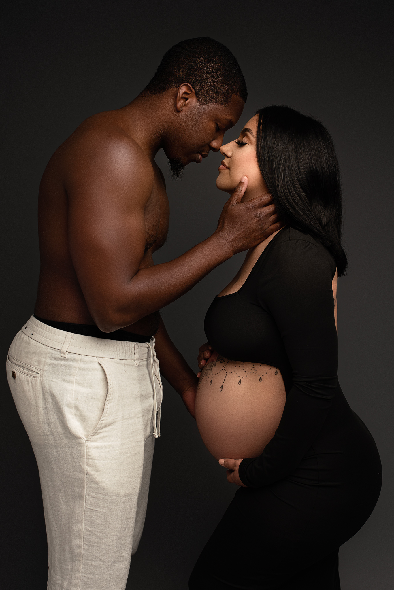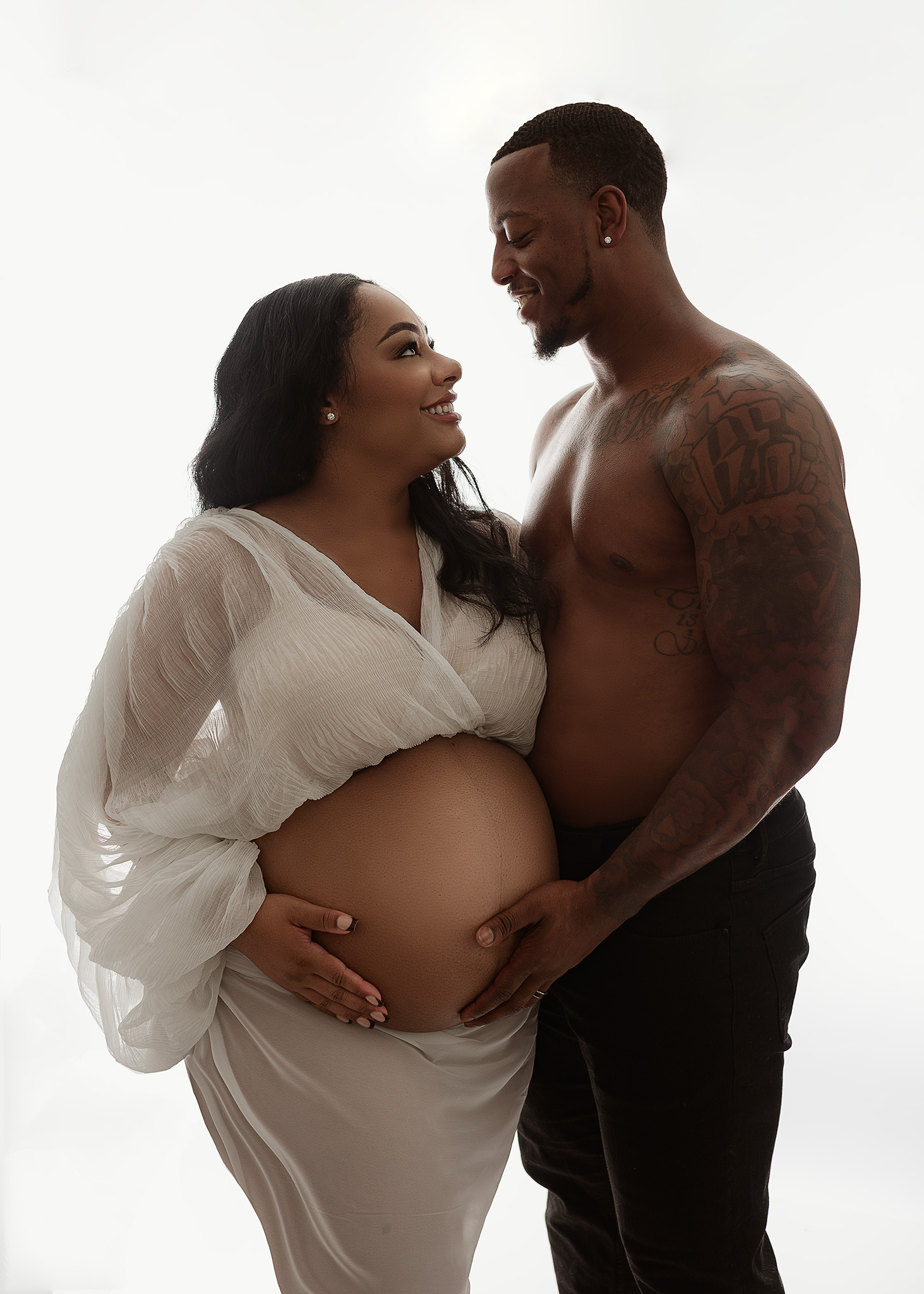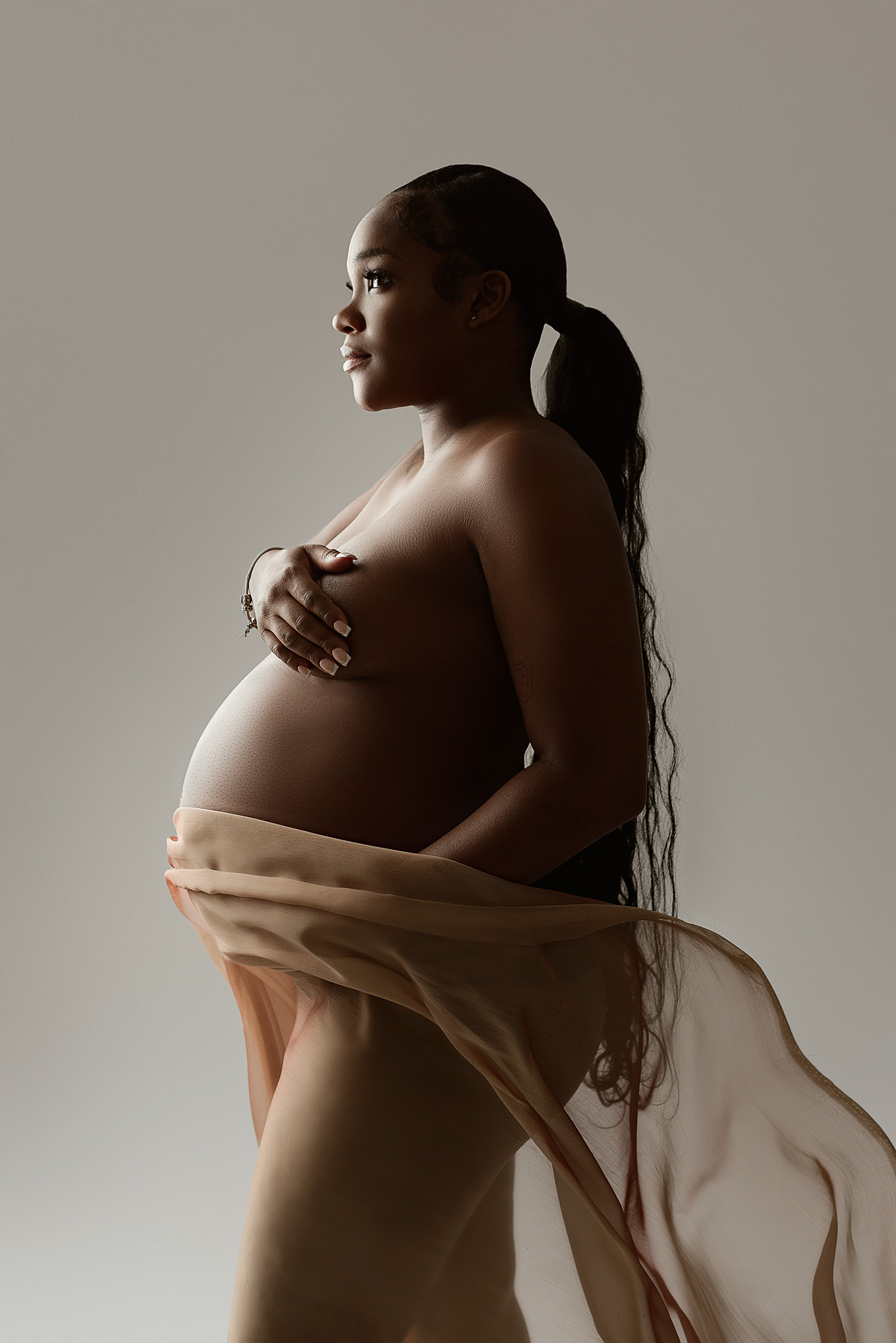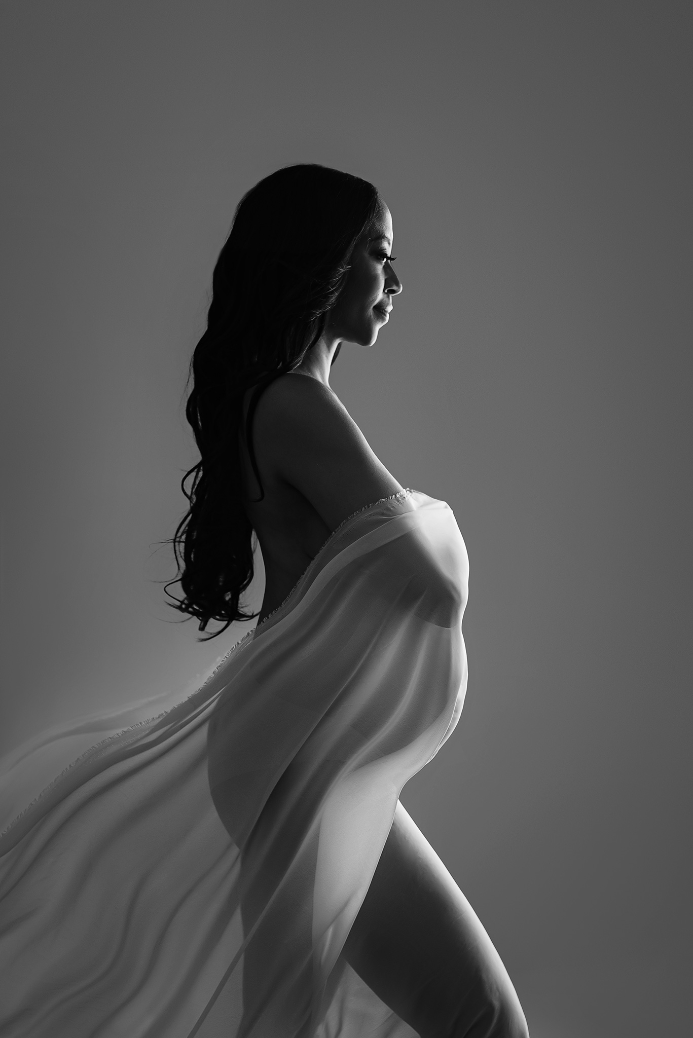 Maternity sessions include yourself and your partner if wanted. I provide all things needed for your maternity photoshoot from professional makeup application prior to your session to the entire client wardrobe including: dresses, tossing fabric, leotards, jewelry, and more all for use during our time together. So no need to go purchase something you’ll only wear once! I’ve got you covered!Â